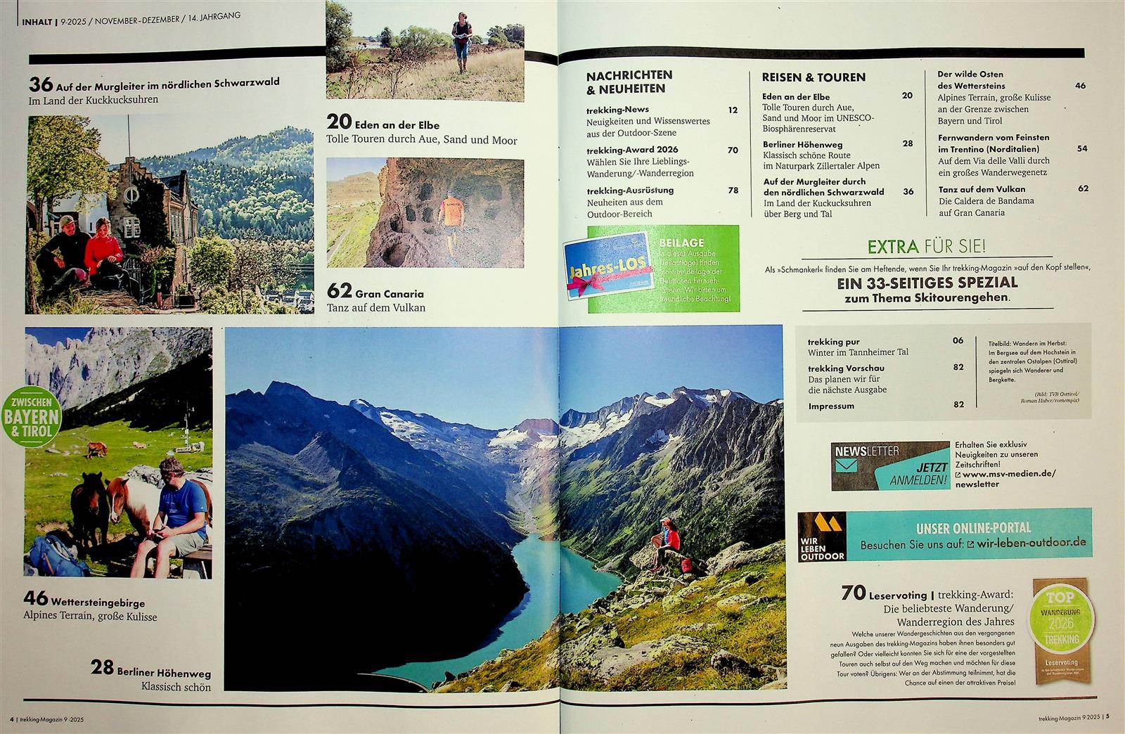 Das Magazin Trekking richtet sich an alle Outdoor-Enthusiasten, Wanderer und Naturliebhaber, die gerne neue Abenteuer in der freien Natur erleben. Die Leser dieses Magazins sind in der Regel aktive Menschen, die gerne wandern, campen und die Welt zu Fuß erkunden. Sie schätzen die Schönheit der Natur und sind stets auf der Suche nach neuen Wanderzielen und Touren. Trekking bietet diesen Lesern inspirierende Reiseberichte, praktische Tipps und Tricks für das Wandern und detaillierte Informationen zu Ausrüstung und Outdoor-Techniken. Wer also gerne draußen unterwegs ist und immer auf der Suche nach neuen Abenteuern ist, sollte definitiv das Magazin Trekking lesen.