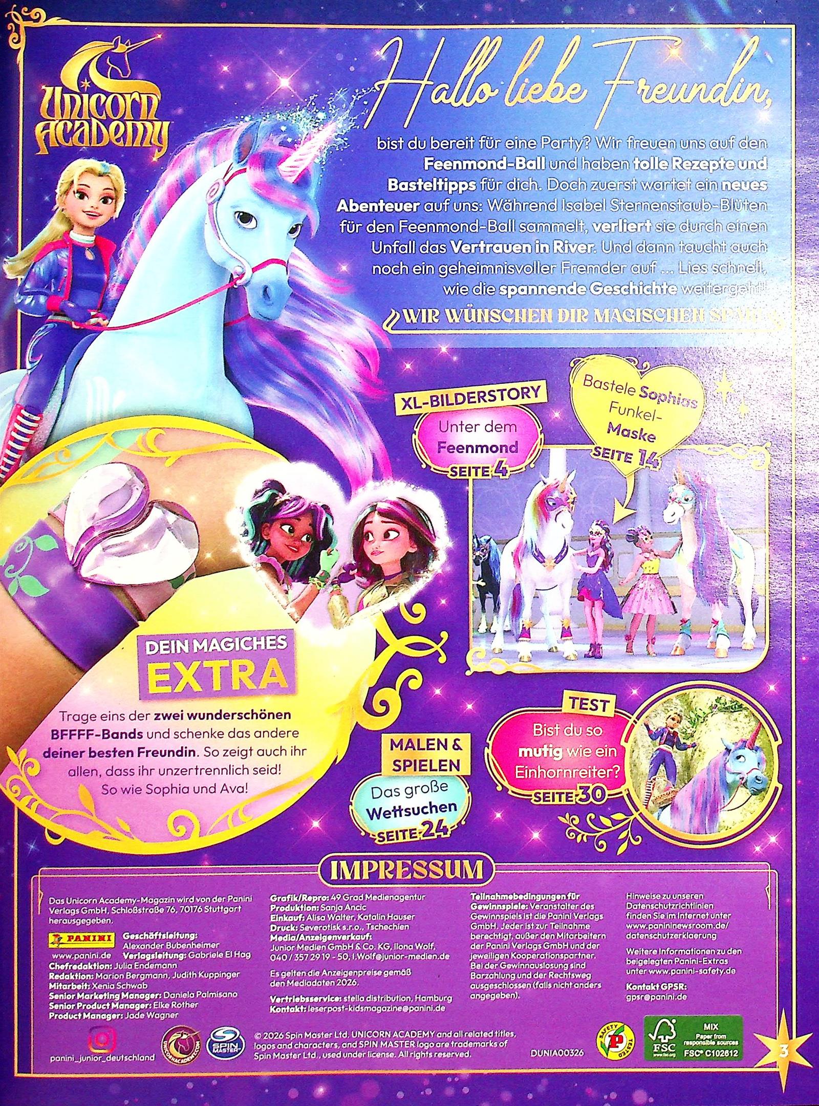Vor allem Mädchen im Alter von 5 bis 11 Jahren begeistern sich für die Serie, die bereits seit Ende 2023 auf Netflix und seit Herbst 2024 auf TOGGO ausgestrahlt wird. Im gleichnamigen Magazin warten tolle Geschichten, Bastelvorlagen, Rezepte sowie spannende Rätsel und vieles mehr auf alle Fans. Natürlich gibt es zu jeder Ausgabe ein tolles Extra passend zur Welt von "Unicorn Academy".