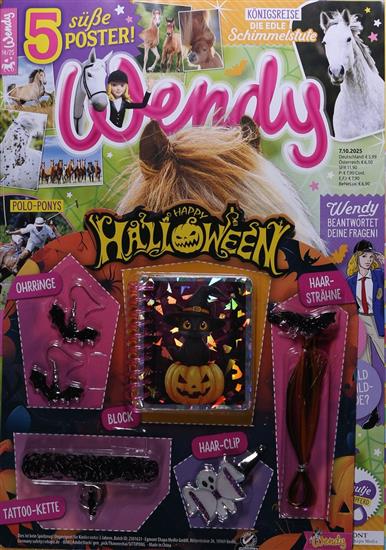 Die Wendy ist eine klassische Pferdezeitschrift, in der sich alles um die sympathischen Vierbeiner dreht. Mit der Zeit hat sich das Magazin zu einer regelrechten Lifestyle–Zeitschrift entwickelt. Konkret bedeutet dies, dass neben Geschichten rund um Pferde auch Aspekte des Tierschutzes sowie Artikel über andere Tierarten präsentiert werden. Im Mittelpunkt steht jedoch nachwievor der beliebte Comic, in dem die Abenteuer der Wendy Thorsteeg erzählt werden. Jede Ausgabe der Wendy wird zudem von einer kleinen Überraschung begleitet, die beispielsweise in Aufkleber, Extra–Comics oder auch Bügelbildern etc. bestehen kann.