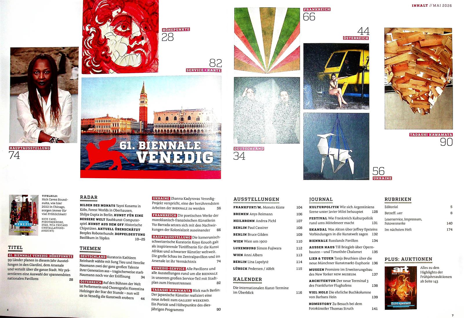 Exklusive Sonderhefte wie die ART Spezial Biennale Venedig liefern den Leitfaden für die Kunstschau mit ihren 79 Künstlerinnen und Künstlern, die ihre Werke vorstellen.