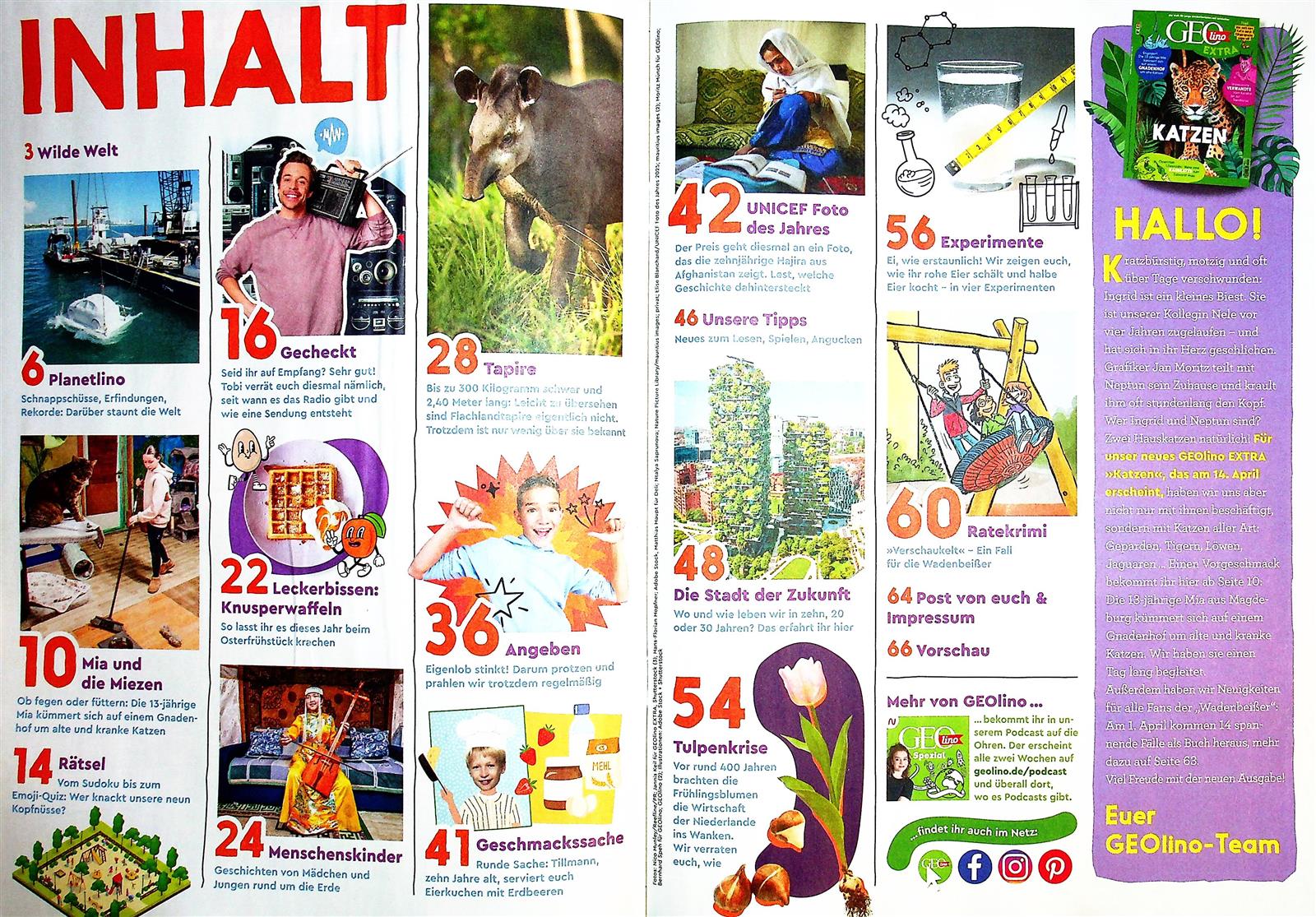 GEOlino, inspiriert von dem beliebtesten Magazine GEO, ist ein lebendiges und charmantes Kinderzeitschrift, das komplexe Themen der Welt kindgerecht und unterhaltsam aufbereitet. Sie legt Wert auf eine sympathisch-spielerische Umsetzung von Wissensthemen zu kindlichen Lebenswelten. GEOlino vermeidet dabei einen lehrbuchhaften Ansatz; stattdessen werden kleine, annotierte Bilder und bunte Illustrationen neben kurzen, verständlichen Artikeln verwendet, um einen einladenden Rahmen zu schaffen. Diese Methode zieht Kinder in eine Entdeckungsreise mit ein, fördert ihre Neugier und ihren Wissensdurst und unterstützt sie darin, ein tieferes Verständnis für Menschen, Tiere und die Umwelt zu entwickeln. Ergänzt wird dies durch spielerische Elemente wie Bastelwettbewerbe zu Natur- und Umweltthemen, die nicht nur Interesse wecken, sondern auch aktiv einbeziehen und somit Wissen und Werte mit Freude vermitteln.
